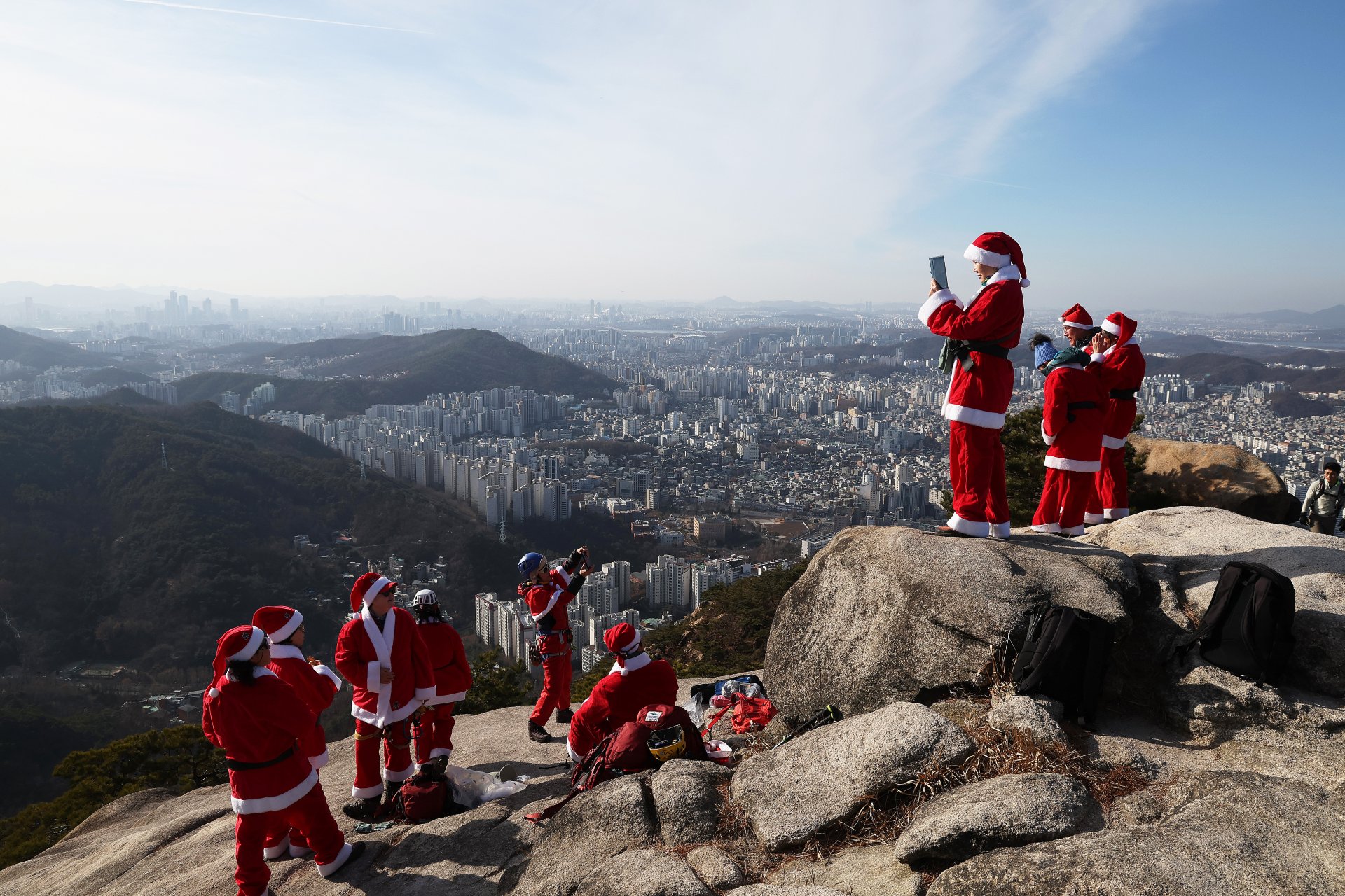 Санта катерачи покоряват планина в Сеул за благотворителност