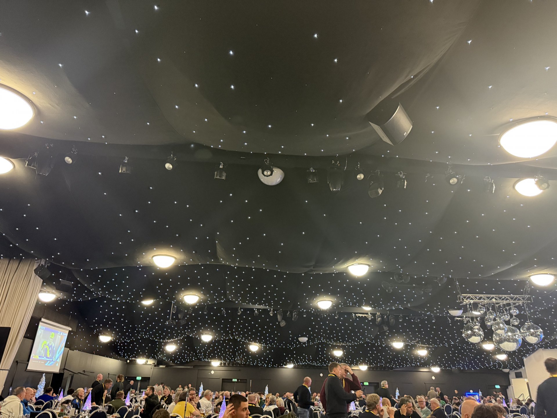 Неусетно минава времето и вече усещаме, че трябва да се насочим към Centenary Pavilion - разположен точно срещу източната трибуна на Елънд Роуд, там ни посрещат в огромна зала, с кръгли маси за феновете, тристепенно меню и множество малки подаръци.