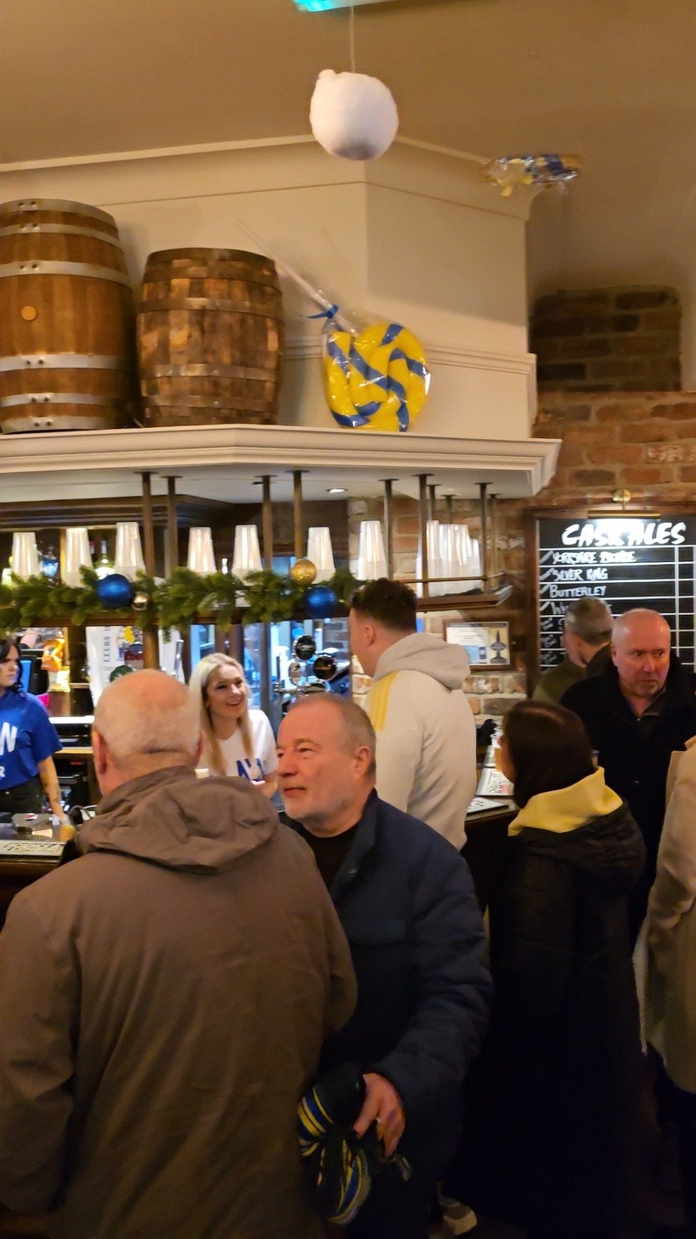 Поколения фенове се събират на групи, всички с екипи на Лийдс от преди и сега. Бащи и синове, майки и дъщерия, цели фамилии, начело с момичетата и момчетата зад бара, също окичили се с аксесоари на отбора.